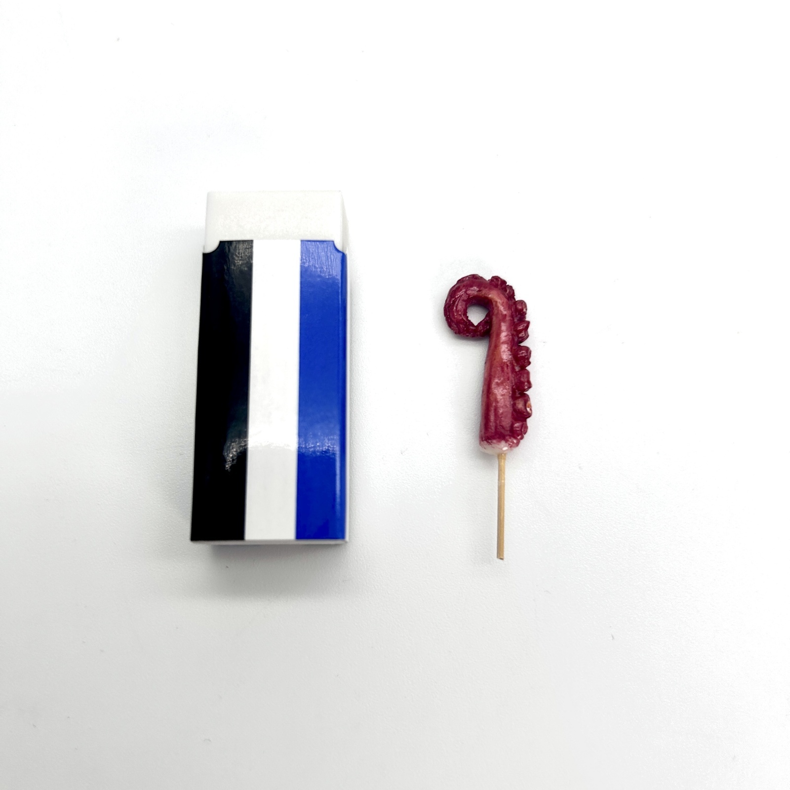 サイズ(多少個体差あります):全長(串含む)36mm前後、タコ全長約25mm、最大幅約11mm