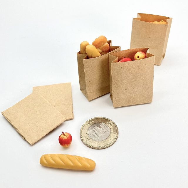 ※紙袋5枚1セットでの販売です。写真に映っているミニチュアフードや比較対象の小銭などの小物類は商品に含まれません。