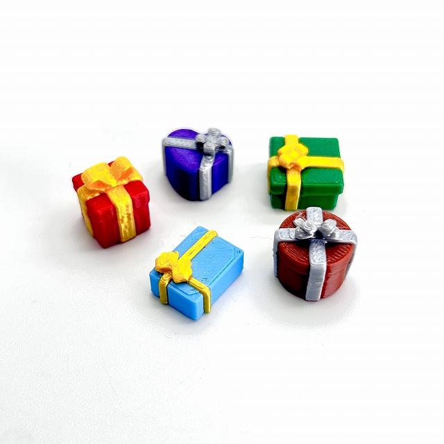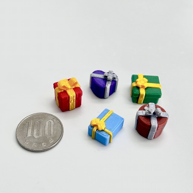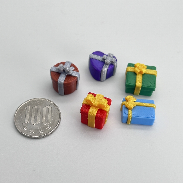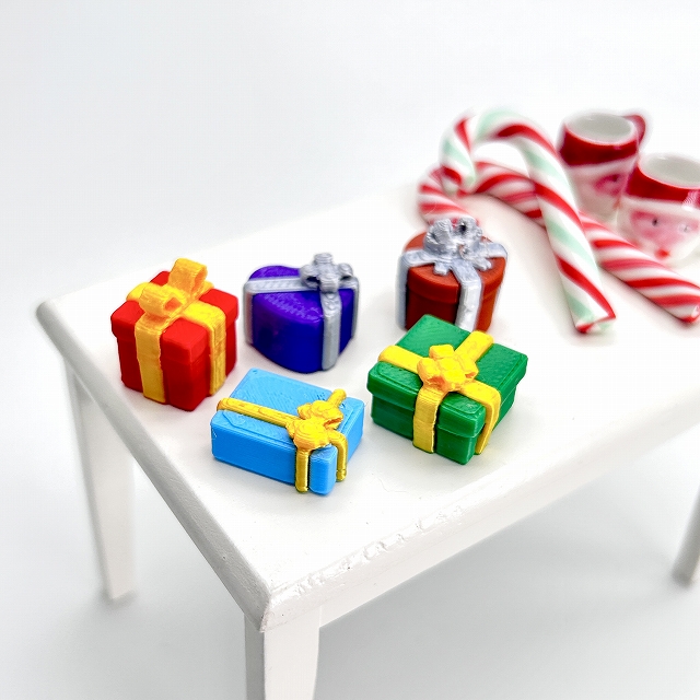 形も色もさまざまなミニチュアギフトボックス5種のセットです。